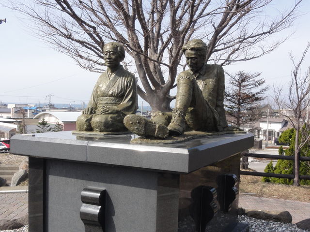 有名な小説家 太宰治の名作「津軽」のクライマックスは幼年時代の子守りであった「タケ」と太宰が30年ぶりに再会する場面であったといえます。二人が出会った小泊小学校の運動場を望める場所に記念館があります(「中泊町文化観光交流協会」より)。